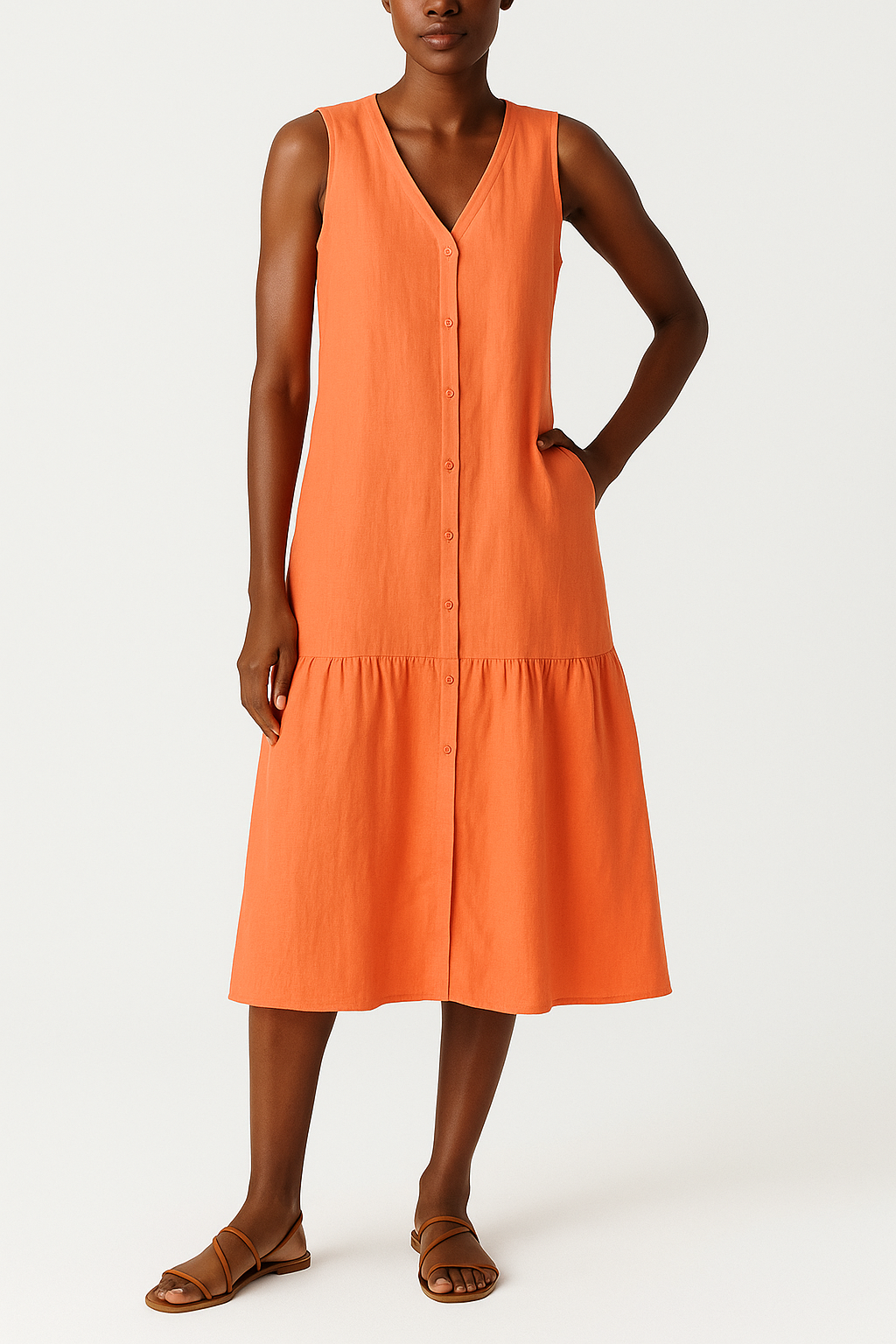 Elina – Stilvolle Leinenkleid mit V-Ausschnitt
