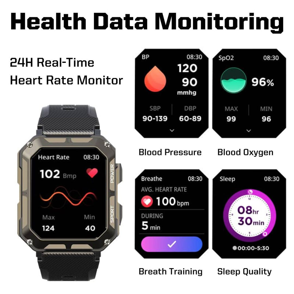 Unzerstörbare multifunktionale Smartwatch für iPhone und Android – Fortschrittliche Technologie
