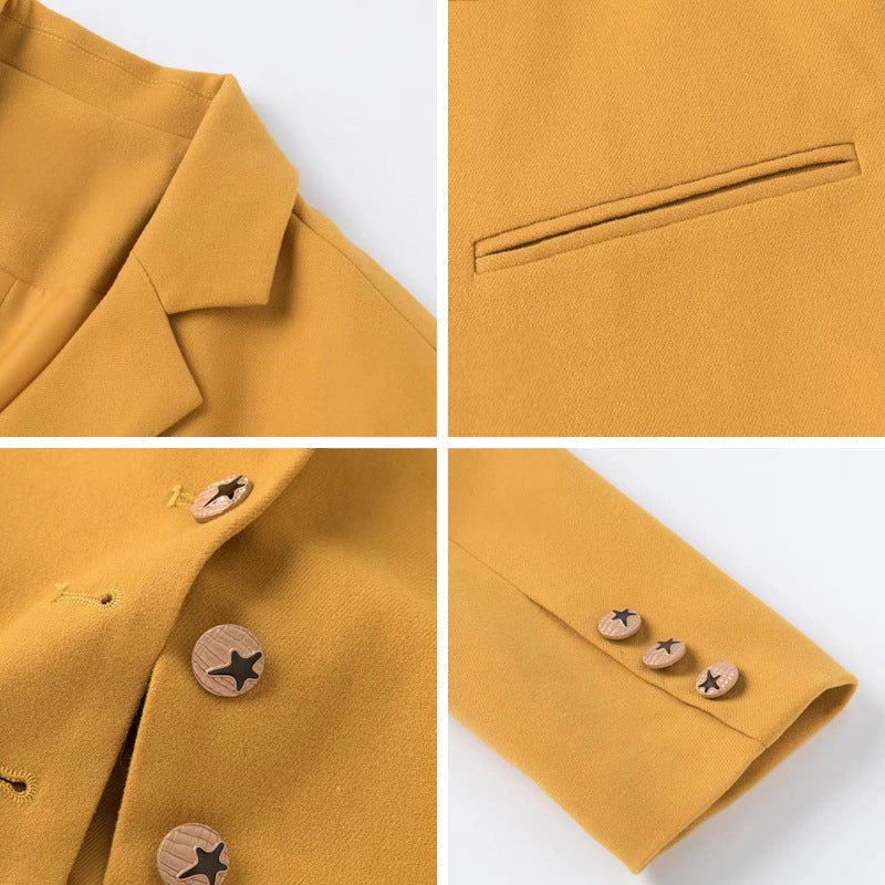 ✦ Edles Knopf-Design: Die auffälligen Knöpfe setzen modische Akzente und verleihen dem Blazer Charakter.